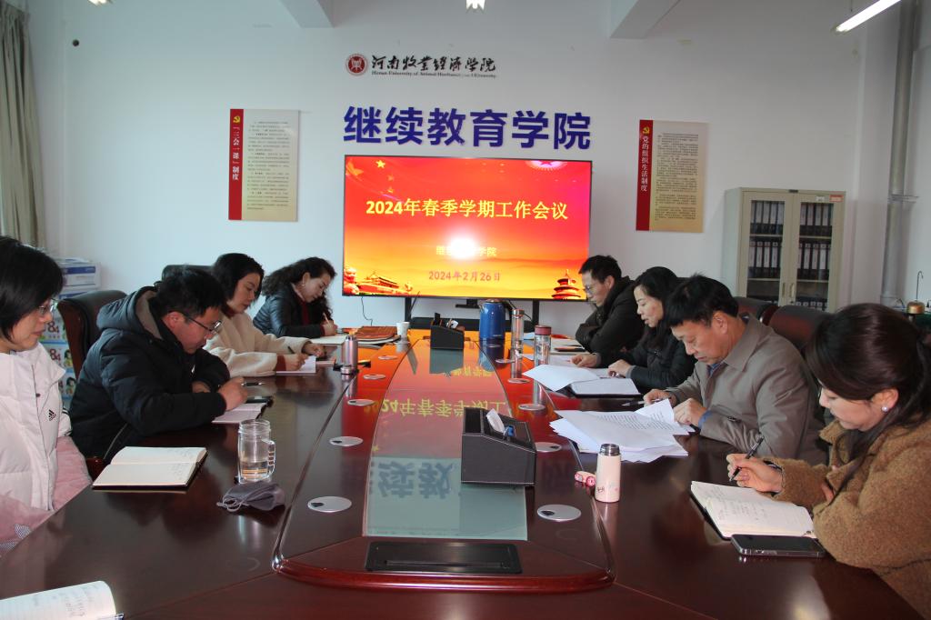 院长宋平对MILE米乐官方网站2023年工作和寒假开展的工作进行了总结和回顾,并根据2024年中央1号文件、2024年河南省政府工作报告、河南省2024年教育工作会议精神,结合米乐官网2024年党政工作要点和学院实际,分析了我国继续教育面临的形势任务,对学院2024年工作重点进行了详细讲解。他指出:一是要提早谋划,持续推进。要结合学校党政工作要点和目标任务,做好开学初各项准备工作,细化责任分工,加强统筹协作,逐级推动落实,在党建工作、科研创新、教育教学、培训等方面持续发力,提质增效;二是要改变作风、转变观念。要深刻认识到脚踏实地、求真务实是做好各项工作的重要保障,善于摒弃固化思维,在工作创新、教学改革、服务社会等方面持续强化学习、提升能力、改进作风,切实增强工作的主动性、科学性与预见性,进一步解放思想、追求实效,把落实整改作为推动工作、加快发展的具体行动,增强继续教育服务供给能力;三是要坚持“大继续教育理念”,结合高等教育新的发展需求和职业教育改革要求,对标对表上级部门工作要求,不断完善体制机制,强化管理,提高团队素质,主动服务社会对继续教育需求;四是学历教育要在“精”上下功夫,校内以不断提高教育教学质量为目标,校外引进优质教育资源,提高管理和教育教学水平;五是非学历教育要在“强”字上做文章,持续贯彻落实《MILE米乐官方网站非学历教育培训管理办法》,探索对校内各类继续教育项目实行“管办分离”的管理模式,积极引导校内力量投入非学历教育培训,服务社会不同层次需求。