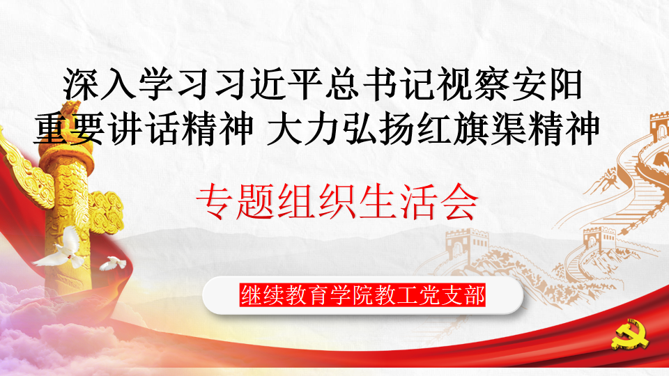 会上,教工党支部书记吕琳首先领学了习近平总书记在陕西延安和河南安阳考察时的重要讲话精神,深刻领会“红旗渠精神同延安精神是一脉相承的,是中华民族不可磨灭的历史记忆”“年轻一代要继承和发扬吃苦耐劳、自力更生、艰苦奋斗的精神,摒弃骄娇二气,像我们的父辈一样把青春热血镌刻在历史的丰碑上”“社会主义是拼出来、干出来、拿命换来的,不仅过去如此,新时代也是如此”等重要论述。随后,全体党员线上同步观看了专题片《根脉——红旗渠精神》,引导党员深刻理解把握“自力更生、艰苦创业、团结协作、无私奉献”红旗渠精神的丰富内涵,从红旗渠精神中汲取不竭精神动力。