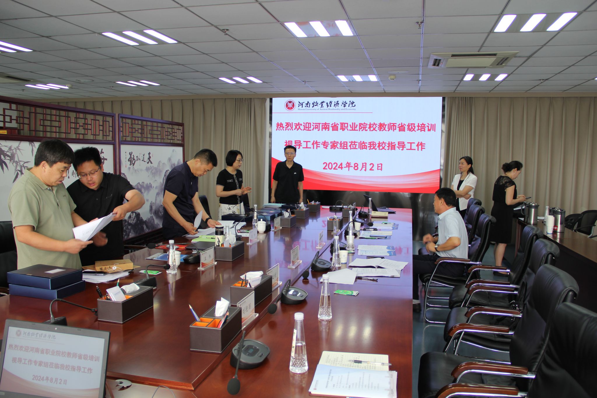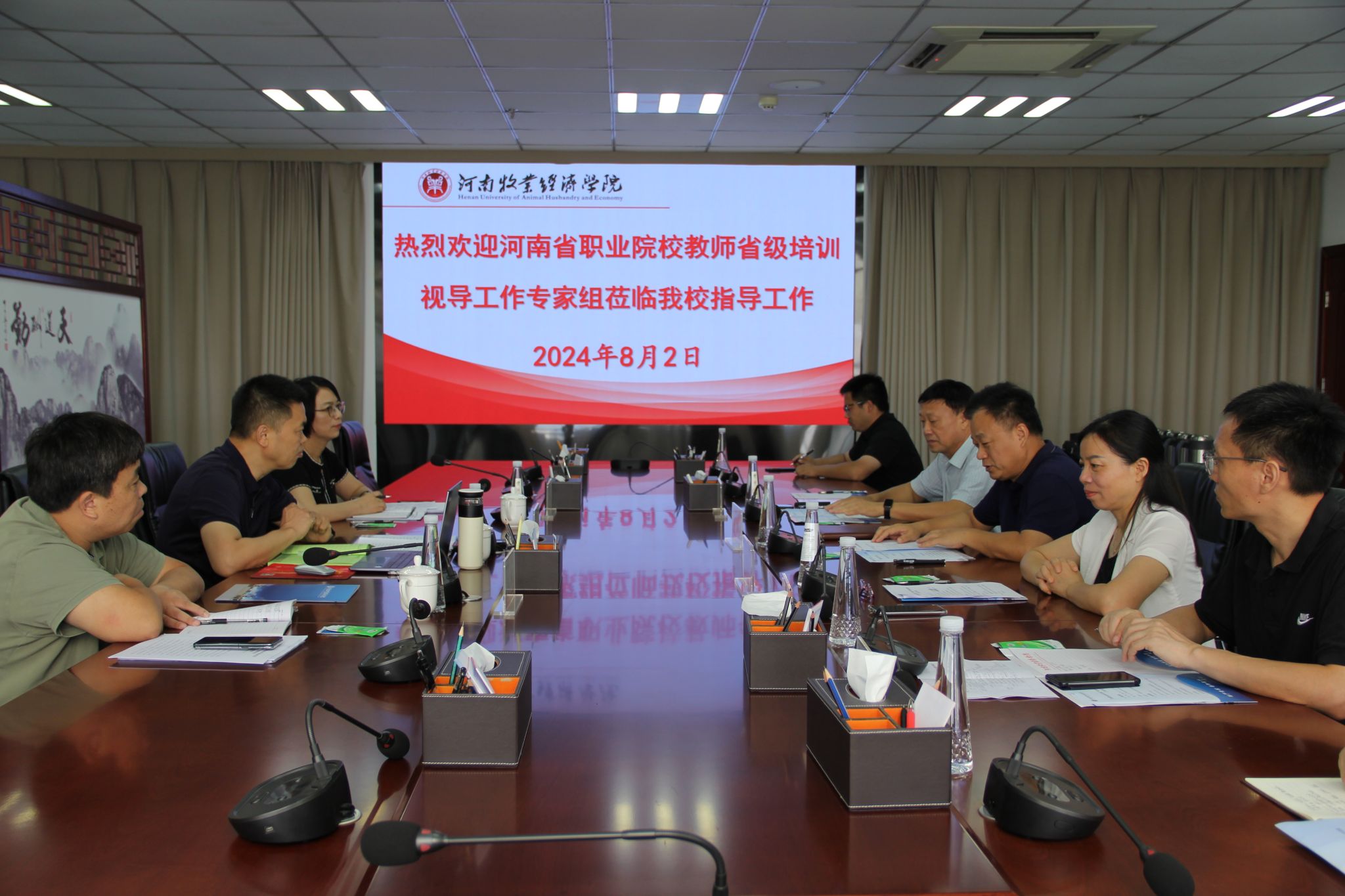 8月2日上午,河南省职业院校“双师型”教师省级培训专项视导组一行3人莅临米乐官网双师培训基地进行视导。专家组由河南经贸职业学院教学副校长康坤、河南农业职业学院教务处长智丽红、郑州工业安全职业学院招生就业处副处长王伟组成。河南牧业经学院副校长席磊出席视导会并致辞,MILE米乐官方网站党总支书记张君华、院长宋平、副院长周延州及培训管理人员参加会议。会议在龙子湖校区图书馆841举行,MILE米乐官方网站党总支书记张君华主持汇报会。